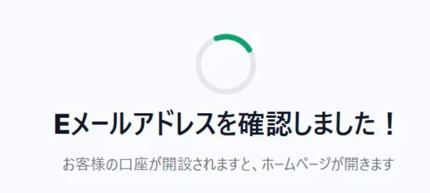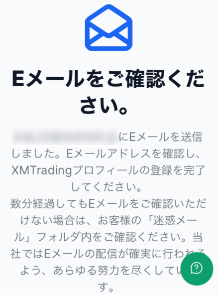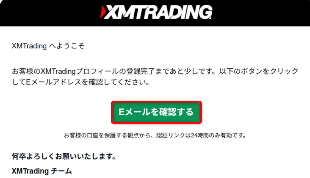 登録後、XMから「Eメールをご確認ください」という画面が表示されます。届いたメール内のリンクをクリックして、アカウント認証を完了させてください。