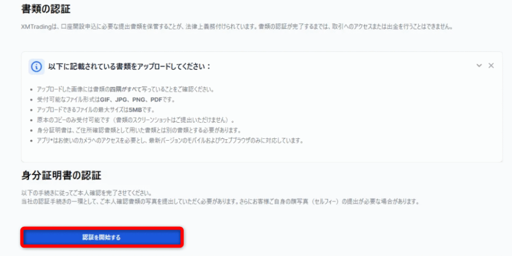 XMから届いた「口座開設完了メール」を確認したら、身分証明書と住所確認書類をアップロードして口座を有効化しましょう。
