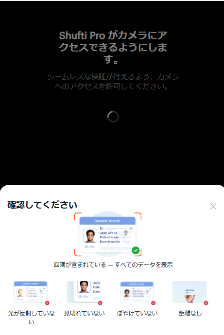 カメラが自動で起動するので、画面の指示に従って身分証明書を撮影します。